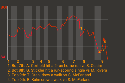 The game was at a stalemate until right fielder George Stickler came to bat in the bottom of the eighth. Facing Boise pitcher Máximo Rivera, he hit a 0-1 fastball for a run-scoring single. It was a game-changer, putting San Antonio on top, 3-2.
